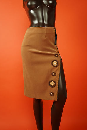 MOON’S Brown & Gold Taffeta Midi Skirt