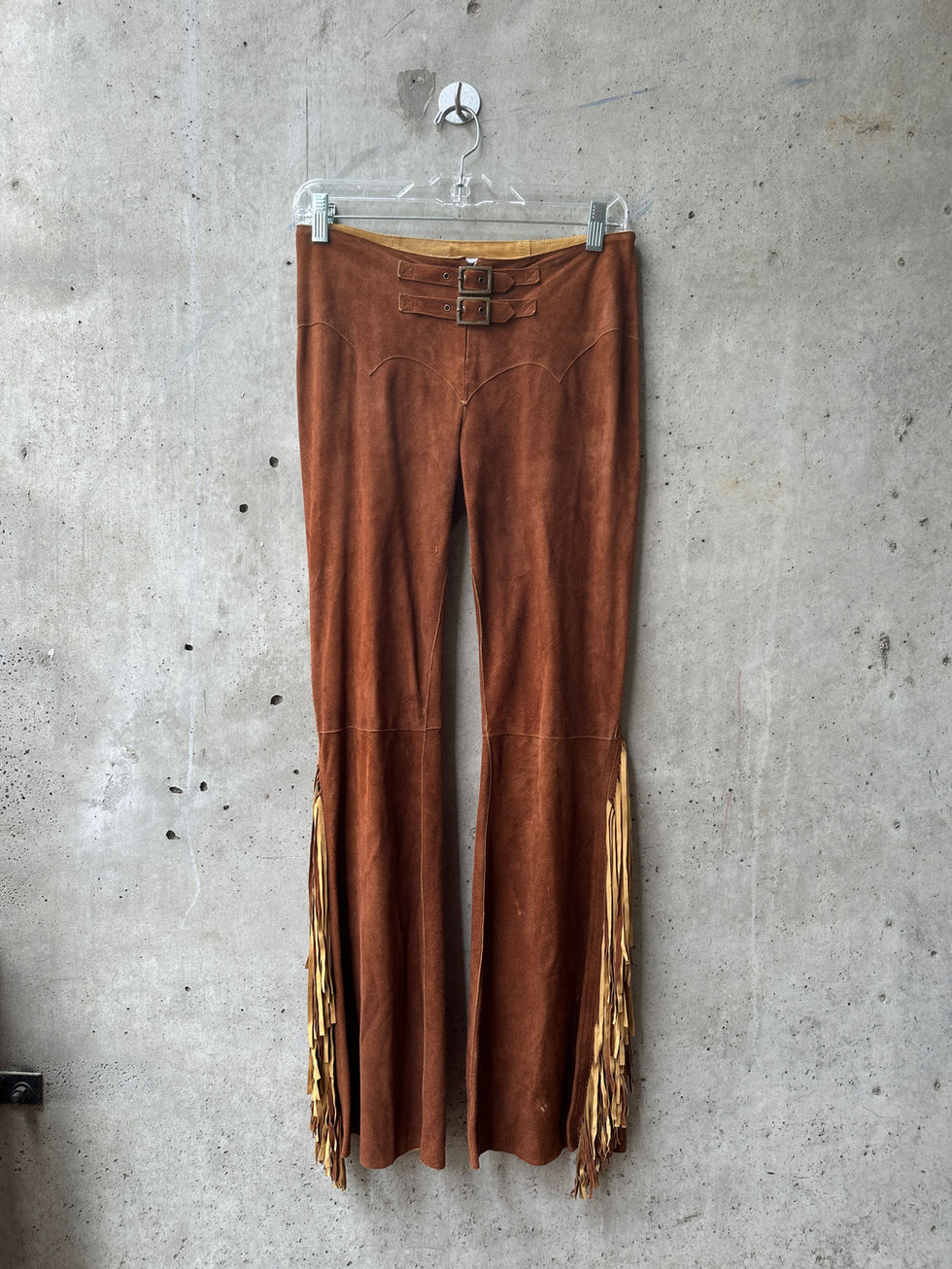 Christian Dior Boutique Suede Fringe Western Pants Brown Leather (Galliano Era)